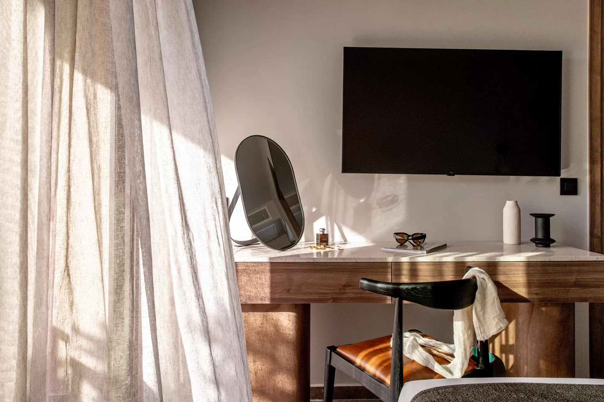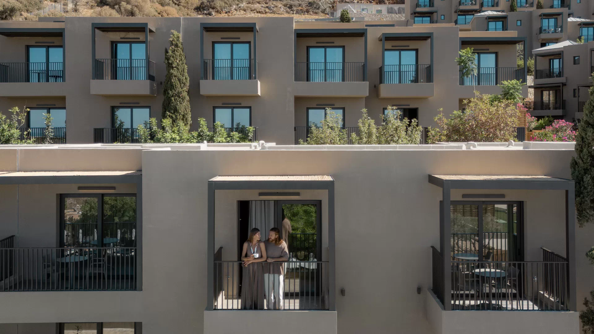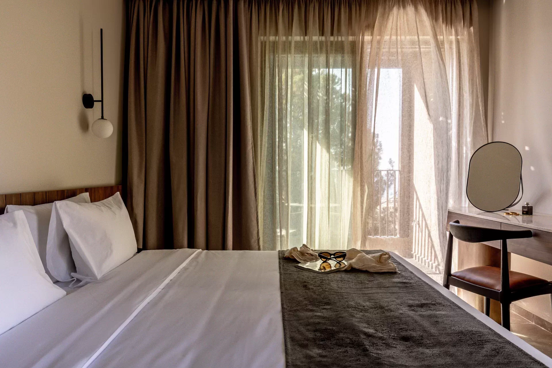 Discover an array of choices in the room category of Elios Hill, offering five distinct types of accommodations, all of which have modern touches and minimalistic decor in warm earth tones to create the ideal setting for a memorable stay.